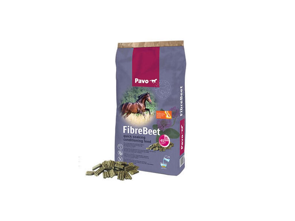 Krmivo Pavo FibreBeet bylo speciálně vyvinuto pro koně a poníky ve špatné kondici. Skládá se z pečlivě sestavené kombinace SpeediBet (vločky z cukrové řepy), vojtěšky a velmi snadno stravitelné vlákniny ze sojových slupek a s nádechem pískavice pro chutnost. Díky vysoce kvalitním proteinům z vojtěšky představuje krmivo FibreBeet dokonalé doplňkové krmivo pro vyhublé, špatně vypadající koně, aby se znovu dostali do perfektní kondice. Krmivo Pavo FibreBeet neobsahuje obiloviny a má velmi nízký obsah cukru a škrobu. Je tedy také velmi vhodné pro koně citlivé na cukr.